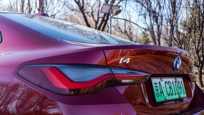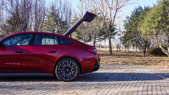 i4的前后車門均為無框玻璃門設(shè)計,這也提升了它的美感,當你拉開車門時,光影與通透,這種高級的美感和情緒價值都拉滿了。掀背的設(shè)計也表明原裝進口的特殊身份。