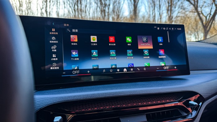 14.9英寸、12.3英寸的雙聯(lián)屏組合讓車內(nèi)的科技感很足,屬于電車的那份電味兒設(shè)計也很濃郁。iDrive車機系統(tǒng)除了流暢度非常高之外,附帶的功能APP也非常多。