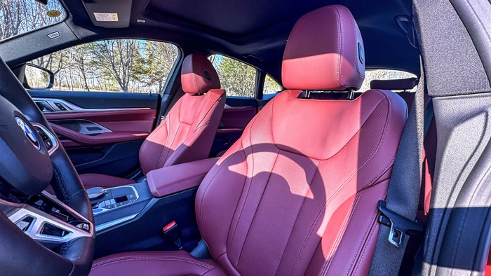 寶馬i4的駕駛座椅采用人體工學(xué)設(shè)計,搭配上新款的M運動方向盤,讓整個駕駛體驗非常順暢自如。